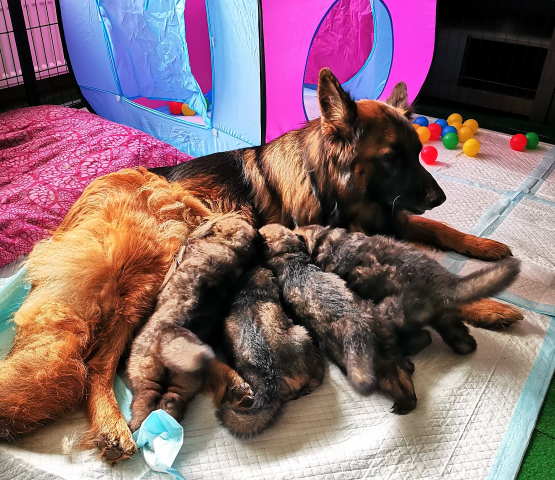 Unsere Isis hat am 08.06.2020 3 Rüden und 1 Hündin zur Welt gebracht. Alle Welpen sind vergeben |